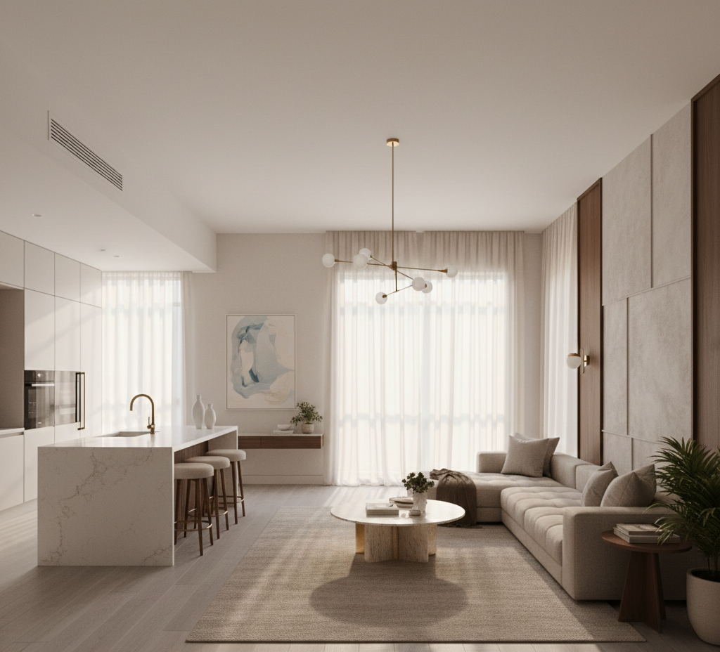 Furniture, lighting, curtains, kitchens, wardrobes, and professional consultation services.